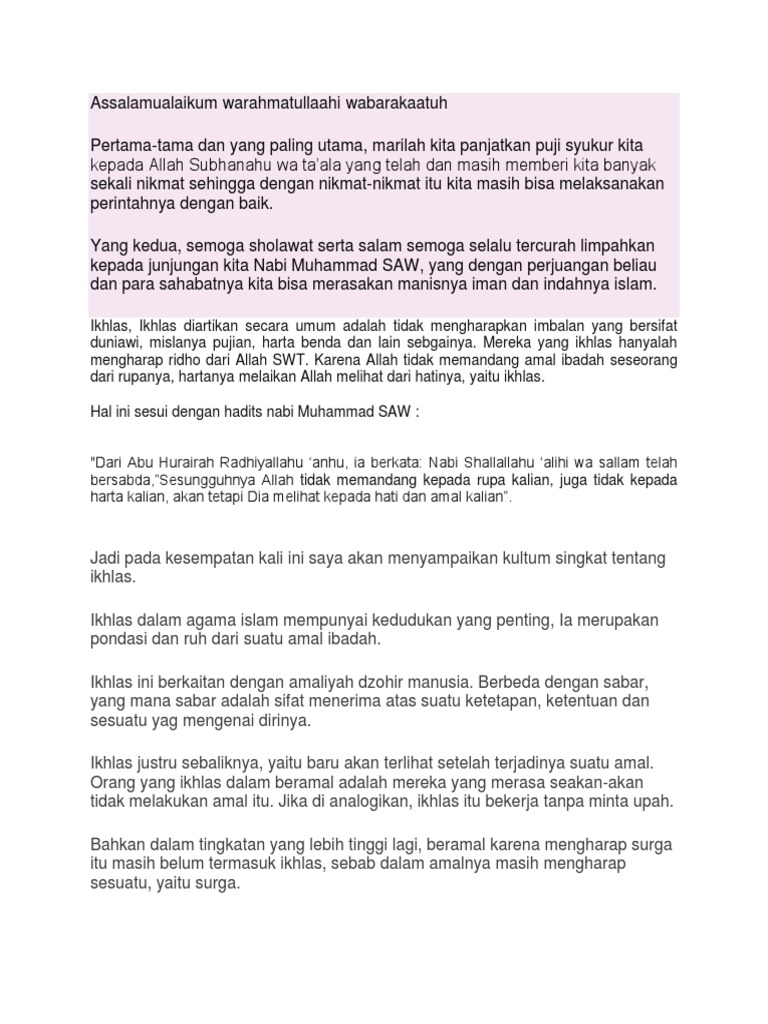 Kultum Singkat Tentang Ikhlas - Temukan inspirasi materi kultum untuk pemula di sini.