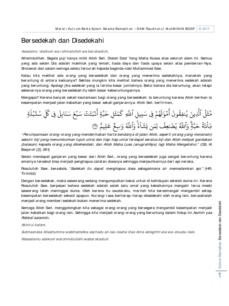 Kultum Singkat Tentang Sedekah - Bingung mau isi kultum singkat tentang ramadhan?